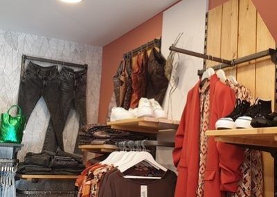 Barron Agencement a eu le plaisir d’accompagner Brin de Folie, boutique de prêt-à-porter, dans la reconfiguration complète de son espace de vente. La propriétaire souhaitait agrandir la surface commerciale sans modifier les murs existants. Grâce à une réorganisation intelligente — déplacement de la réserve à l’étage et intégration des cabines d’essayage dans le couloir — nous avons réussi à dégager 25 m² supplémentaires, entièrement dédiés à la vente. Cette transformation s’est accompagnée d’une modernisation de l’ambiance : murs peints en Terracotta, matériaux bruts comme le bois et le métal, et touches végétales pour une atmosphère chaleureuse et authentique.